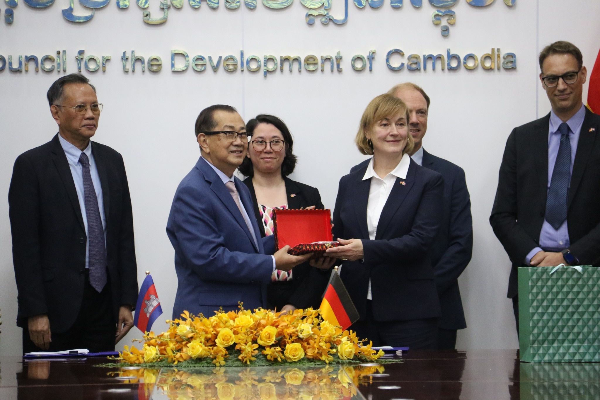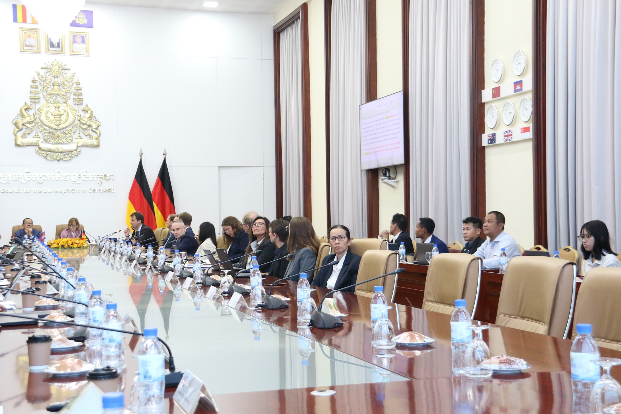 នាថ្ងៃទី១៨-១៩ ខែវិច្ឆិកា ឆ្នាំ២០២៥ នៅទីស្តីការក្រុមប្រឹក្សាអភិវឌ្ឍន៍កម្ពុជា, ឯកឧត្តម ឈៀង យ៉ាណារ៉ា ទេសរដ្ឋមន្ត្រីទទួលបន្ទុកបេសកកម្មពិសេស, អនុប្រធានទី ២ ក្រុមប្រឹក្សាអភិវឌ្ឍន៍កម្ពុជា និងលោកជំទាវ Christina Laun ប្រធានទទួលបន្ទុកតំបន់អាស៊ីអាគ្នេយ៍នៃក្រសួងសហប្រតិបត្តិការសេដ្ឋកិច្ចនិងការអភិវឌ្ឍ (BMZ) បានដឹកនាំកិច្ចចរចាស្តីពីកិច្ចសហប្រតិបត្តិការអភិវឌ្ឍន៍ ឆ្នាំ២០២៥ រវាងរាជរដ្ឋាភិបាលកម្ពុជា និងរដ្ឋាភិបាលសាធារណរដ្ឋសហព័ន្ធ ដោយមានការចូលរួមពីឯកឧត្តម Stefan Anton Masserer ឯកអគ្គរដ្ឋទូតសាធារណរដ្ឋសហព័ន្ធអាល្លឺម៉ង់ប្រចាំកម្ពុជា, តំណាងទីភ្នាក់ងារអាល្លឺម៉ង់សម្រាប់កិច្ចសហប្រតិបត្តិការអន្តរជាតិប្រចាំកម្ពុជា (GIZ), តំណាងធនាគារអភិវឌ្ឍន៍អាល្លឺម៉ង់ប្រចាំកម្ពុជា (KFW) និងតំណាងជាន់ខ្ពស់ក្រសួងនិងស្ថាប័នពាក់ព័ន្ធរបស់រាជរដ្ឋាភិបាល ។ គោលដៅចម្បងនៃកិច្ចចរចានេះគឺ ១) ពិភាក្សាលើវឌ្ឍនភាពកិច្ចសហប្រតិបត្តិការអភិវឌ្ឍន៍ទ្វេភាគី ទាំងទិដ្ឋភាពបច្ចេកទេស និងទិដ្ឋភាពនយោបាយ និង ២) ពិនិត្យ និងតម្រង់ទិសវិស័យអាទិភាពនៃកិច្ចសហប្រតិបត្តិការអភិវឌ្ឍន៍រវាងប្រទេសទាំងពីរនាពេលអនាគត ។