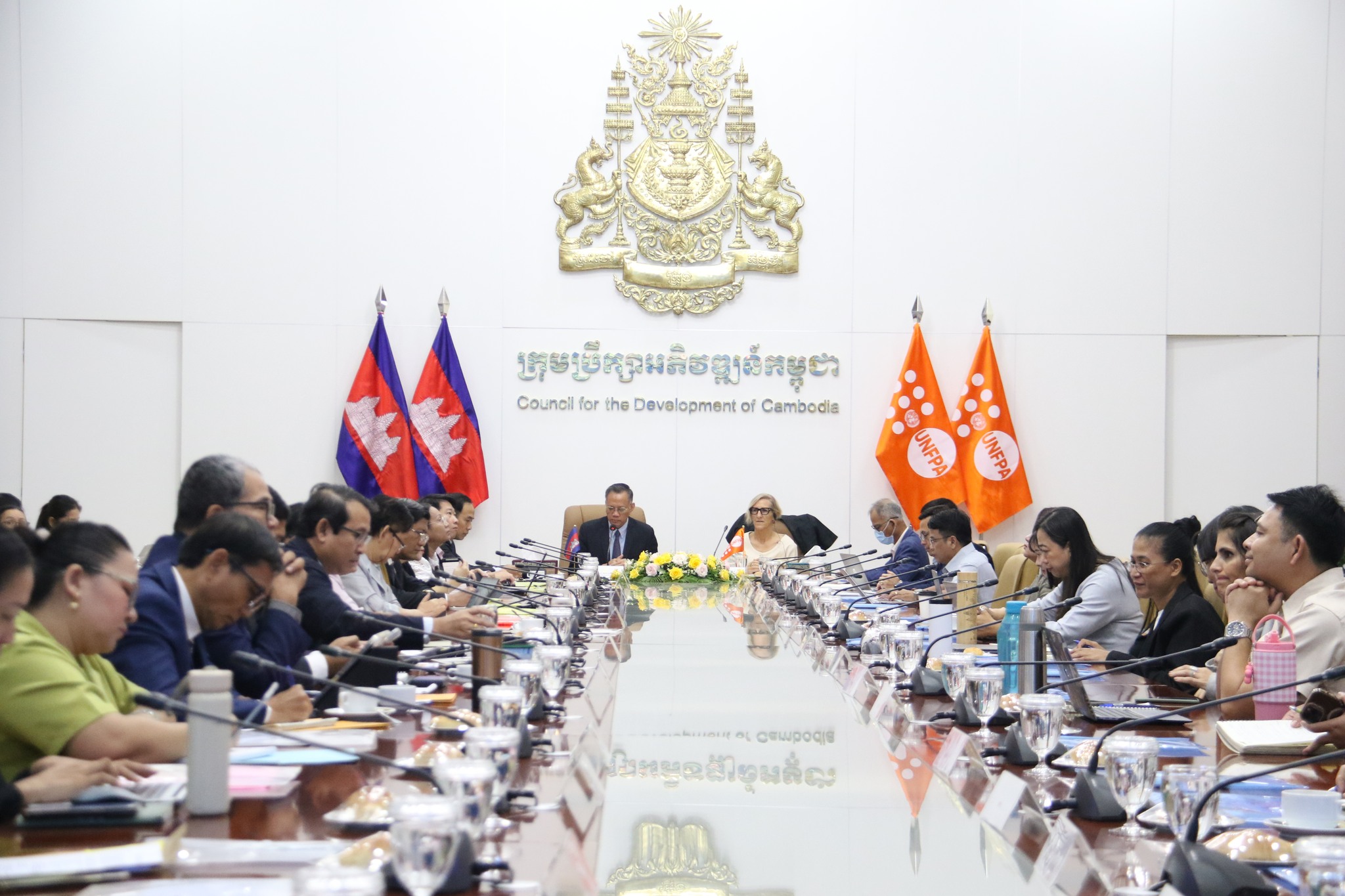 នាព្រឹកថ្ងៃព្រហស្បតិ៍ ១៥រោច ខែកត្តិក ឆ្នាំម្សាញ់ សប្តស័ក ព.ស. ២៥៦៩ ត្រូវនឹងថ្ងៃទី២០ ខែវិច្ឆិកា ឆ្នាំ២០២៥, នៅវិមានរដ្ឋាភិបាល, មានរៀបចំកិច្ចប្រជុំសហដឹកនាំដោយ ឯកឧត្ដម រ៉ិត វុទ្ធី អគ្គលេខាធិការ នៃគណៈកម្មាធិការសហប្រតិបត្តិការអភិវឌ្ឍន៍កម្ពុជា នៃក្រុមប្រឹក្សាអភិវឌ្ឍន៍កម្ពុជា (គ.ស.អ.ក/ក.អ.ក) និងលោកស្រី Sandra BernKlau តំណាងមូលនិធិអង្គការសហប្រជាជាតិសម្រាប់ប្រជាជន (UNFPA) ប្រចាំកម្ពុជា ។ កិច្ចប្រជុំនេះមានការអញ្ជើញចូលរួមពីឯកឧត្តម លោកជំទាវ លោក លោកស្រីតំណាងរបស់ក្រសួង ស្ថាប័នពាក់ព័ន្ធរបស់រាជរដ្ឋាភិបាល រួមមាន៖ ទីស្តីការគណៈរដ្ឋមន្ត្រី, ក្រសួងការបរទេស និងសហប្រតិបត្តិការអន្តរជាតិ, ក្រសួងសេដ្ឋកិច្ចនិងហិរញ្ញវត្ថុ, ក្រសួងមហាផ្ទៃ, ក្រសួងអប់រំ យុវជន និងកីឡា, ក្រសួងសុខាភិបាល, ក្រសួងផែនការ, និងក្រសួងកិច្ចការនារី និងអង្គការមិនមែនរដ្ឋាភិបាលជាភ្នាក់ងារអនុវត្តគម្រោង, ព្រមទាំងភាគីពាក់ព័ន្ធ ចំនួនប្រមាណ ៦០រូប ។ គោលដៅចម្បងនៃកិច្ចប្រជុំ គឺពិនិត្យវឌ្ឍនភាពការអនុវត្តកម្មវិធីអភិវឌ្ឍន៍ប្រចាំប្រទេស ឆ្នាំ២០២៤-២០២៨ សម្រាប់ឆ្នាំ ២០២៥ និងការកំណត់អាទិភាពសម្រាប់ឆ្នាំ២០២៦ ។