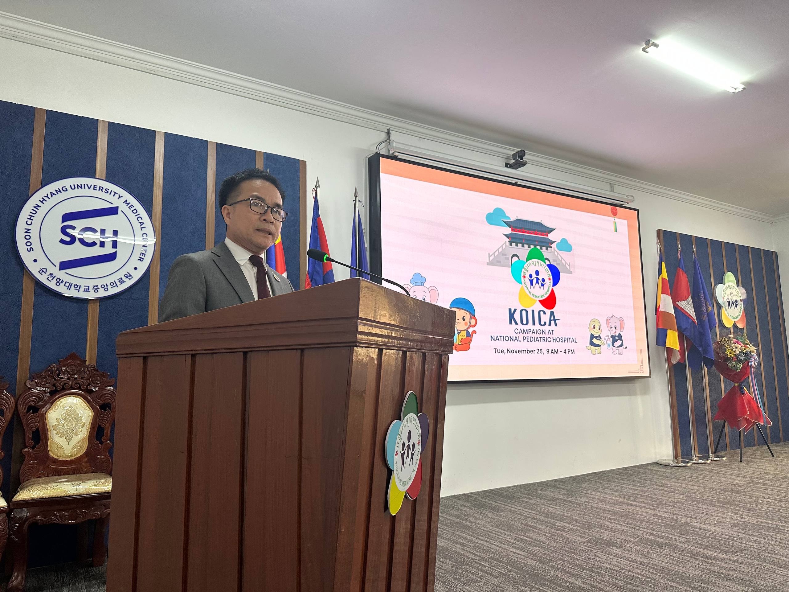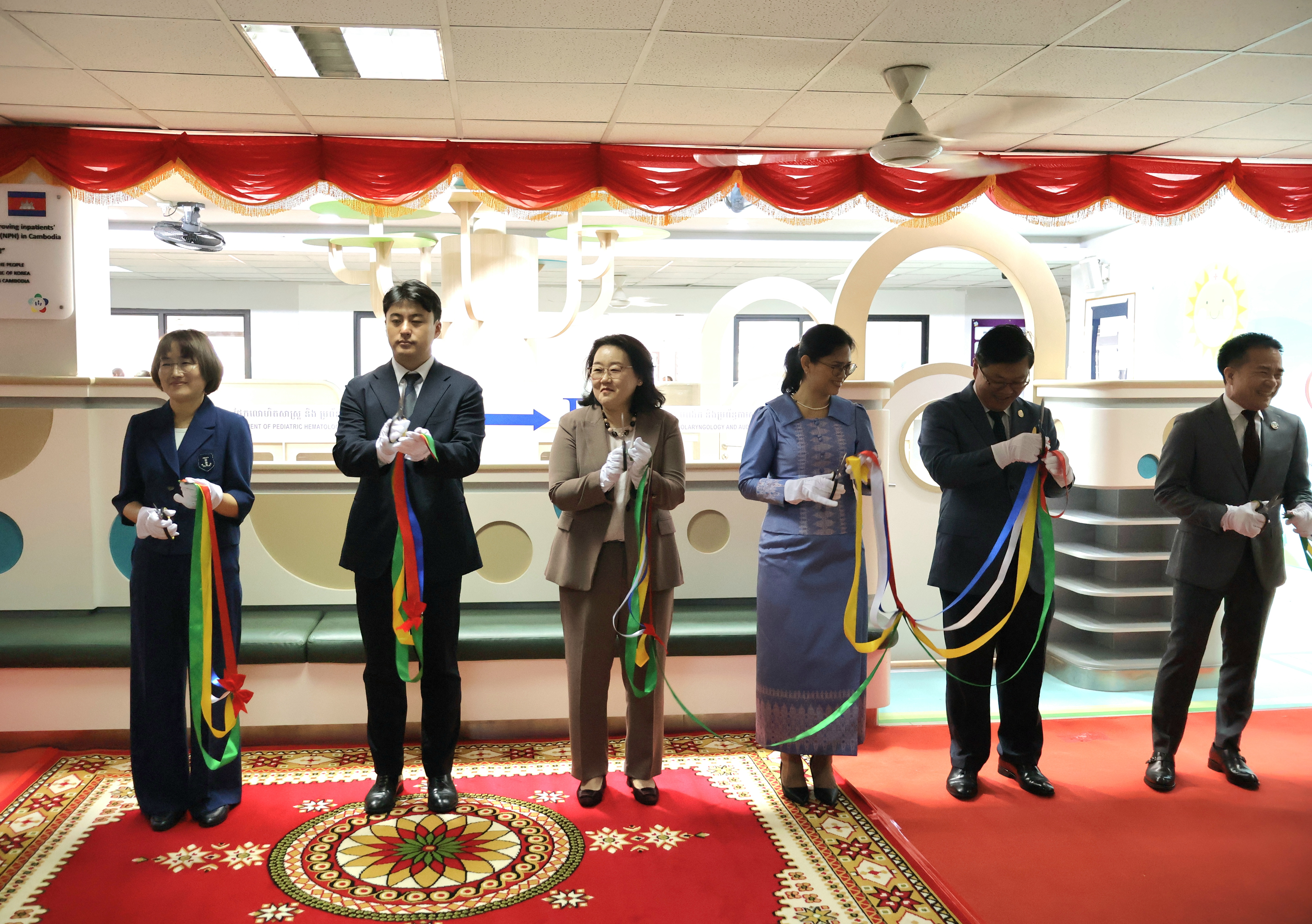 On Tuesday morning, 25 November 2025, at the National Pediatric Hospital, H.E. Mrs. PHANA Veunida, Deputy Secretary General of the Cambodian Development Cooperation Board of the Council for the Development of Cambodia (CDCB/CDC), co-presided over the Facility Handover and Opening Ceremony for the new Kitchen, Nutrition Consulting Room, and Indoor Playground. The event was also attended by Ms. CHOI Moon Jung, Country Director of the Korea International Cooperation Agency (KOICA) Office in Cambodia; H.E. Dr. Heng Suthy, Undersecretary of State for Health; and Dr. Kim Ang, Deputy Director of the National Pediatric Hospital; as well as Korean volunteers and staff from the National Pediatric Hospital, totaling approximately 70 people.