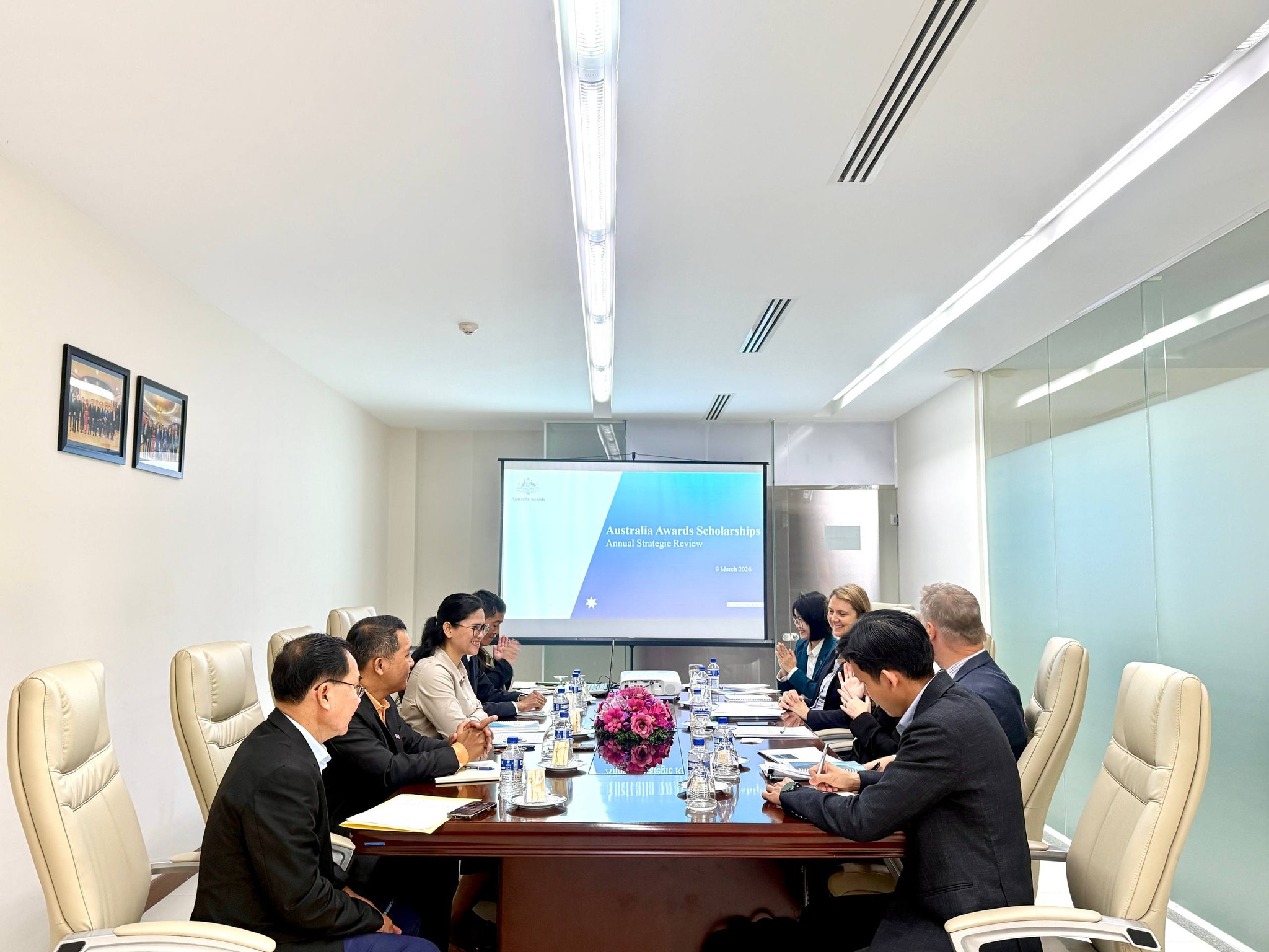 ទីស្ដីការក្រុមប្រឹក្សាអភិវឌ្ឍន៏កម្ពុជា៖ នាព្រឹកថ្ងៃទី២៦ ខែមីនា ឆ្នាំ២០២៦ លោកជំទាវ ផាណា វុឺនីដា អគ្គលេខាធិការរងនៃគណៈកម្មាធិការសហប្រតិបត្តិការអភិវឌ្ឍន៍កម្ពុជានៃក្រុមប្រឹក្សាអភិវឌ្ឍន៍កម្ពុជា (គ.ស.អ.ក/ក.អ.ក) បានទទួលជួបពិភាក្សាការងារជាមួយ លោកស្រី Kirsty Harris ប្រធានកិច្ចសហប្រតិបត្តិការអភិវឌ្ឍន៍, លោកស្រី Sandra Martinovic លេខាទូតទី២ និងលោក Michael Sadlon ប្រធានកម្មវិធីអាហារូបករណ៍អូស្ត្រាលីនៅកម្ពុជា ព្រមទាំងសហការីនៃស្ថានទូតអូស្រ្តាលី ។ គោលបំណងនៃកិច្ចពិភាក្សាដើម្បីពិនិត្យវឌ្ឍនភាពការងារស្តីពីការអនុវត្តកម្មវិធីអាហារូបករណ៍អូស្រ្តាលីនៅកម្ពុជា, លទ្ធផលនៃការជ្រើសរើសបេក្ខជនសម្រាប់ឆ្នាំសិក្សា (Intake 2026) និងលើកទិសដៅការងារឆ្នាំ 2026 ។