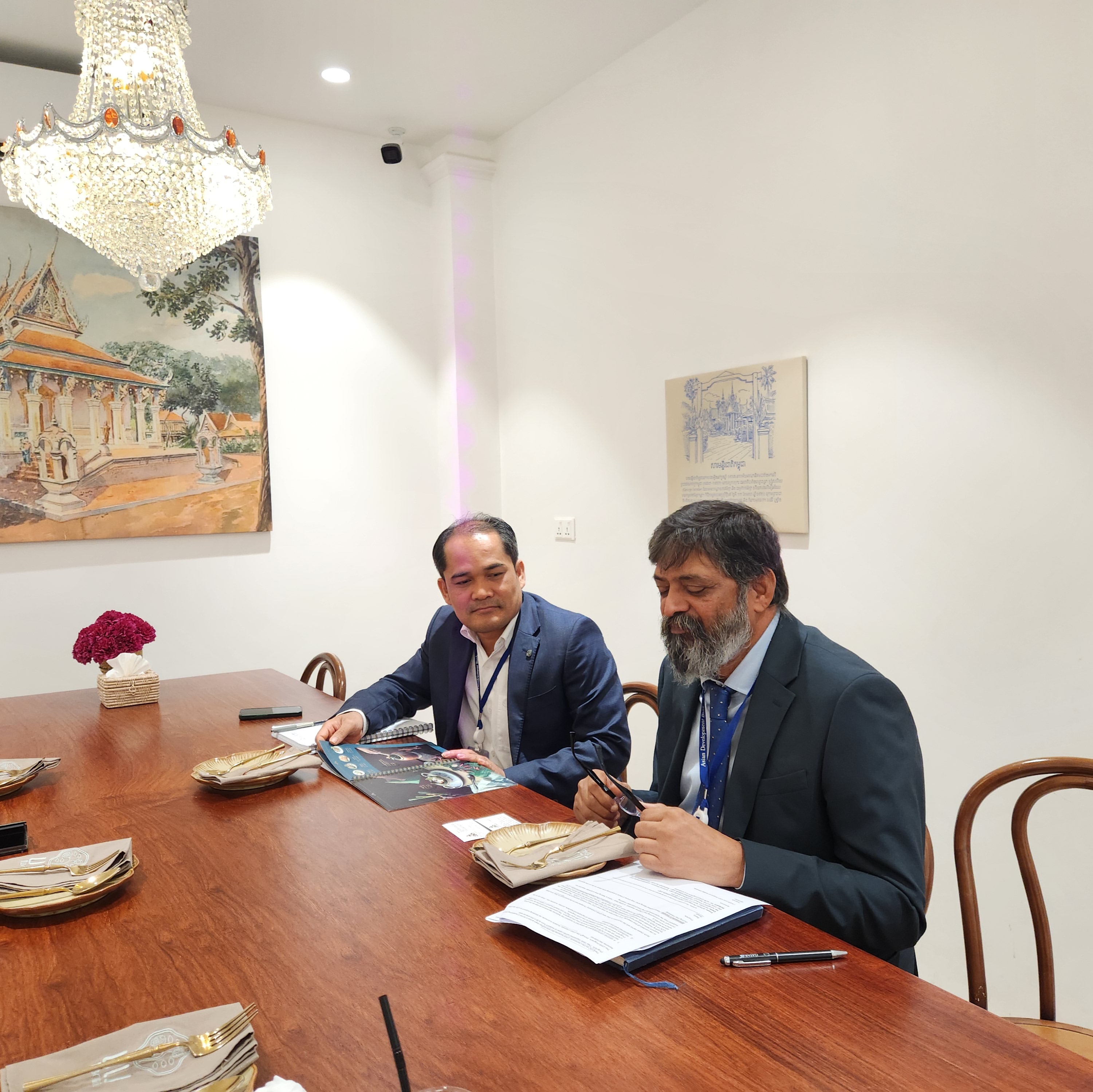 Cambodian National Secretariat of the Greater Mekong Subregion (GMS) 28 April 2026: DSG of the Cambodian Development Cooperation Board of CDC and as Cambodia National Coordinator for GMS, H.E. Mr. Chou Heng, sat down over lunch with Mr. Vijay Kumar Akasam, Country Operations Head of ADB Cambodia Resident Mission, to discuss strengthening collaboration in the GMS cooperation program framework.