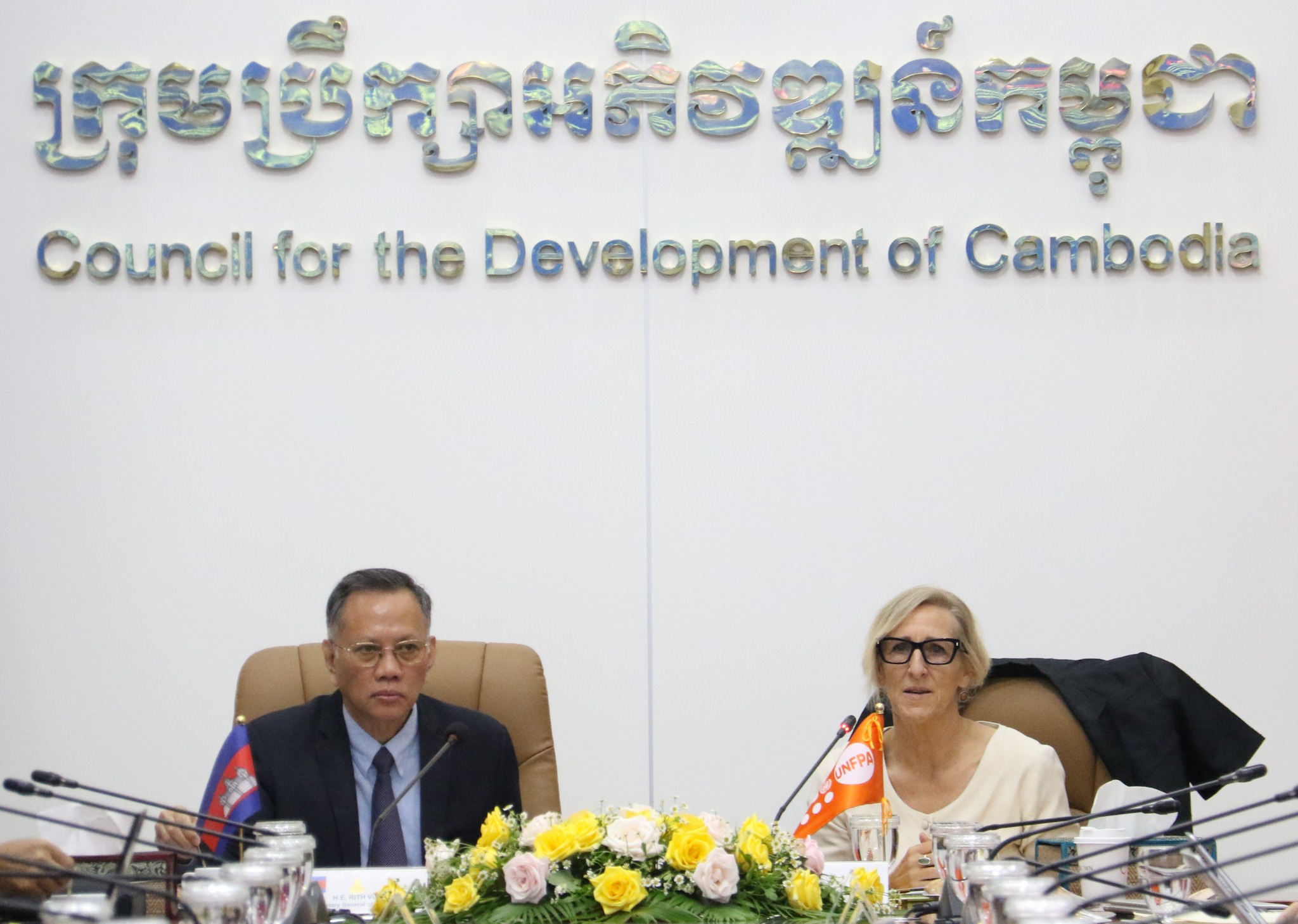 នាព្រឹកថ្ងៃព្រហស្បតិ៍ ១៥រោច ខែកត្តិក ឆ្នាំម្សាញ់ សប្តស័ក ព.ស. ២៥៦៩ ត្រូវនឹងថ្ងៃទី២០ ខែវិច្ឆិកា ឆ្នាំ២០២៥, នៅវិមានរដ្ឋាភិបាល, មានរៀបចំកិច្ចប្រជុំសហដឹកនាំដោយ ឯកឧត្ដម រ៉ិត វុទ្ធី អគ្គលេខាធិការ នៃគណៈកម្មាធិការសហប្រតិបត្តិការអភិវឌ្ឍន៍កម្ពុជា នៃក្រុមប្រឹក្សាអភិវឌ្ឍន៍កម្ពុជា (គ.ស.អ.ក/ក.អ.ក) និងលោកស្រី Sandra BernKlau តំណាងមូលនិធិអង្គការសហប្រជាជាតិសម្រាប់ប្រជាជន (UNFPA) ប្រចាំកម្ពុជា ។ កិច្ចប្រជុំនេះមានការអញ្ជើញចូលរួមពីឯកឧត្តម លោកជំទាវ លោក លោកស្រីតំណាងរបស់ក្រសួង ស្ថាប័នពាក់ព័ន្ធរបស់រាជរដ្ឋាភិបាល រួមមាន៖ ទីស្តីការគណៈរដ្ឋមន្ត្រី, ក្រសួងការបរទេស និងសហប្រតិបត្តិការអន្តរជាតិ, ក្រសួងសេដ្ឋកិច្ចនិងហិរញ្ញវត្ថុ, ក្រសួងមហាផ្ទៃ, ក្រសួងអប់រំ យុវជន និងកីឡា, ក្រសួងសុខាភិបាល, ក្រសួងផែនការ, និងក្រសួងកិច្ចការនារី និងអង្គការមិនមែនរដ្ឋាភិបាលជាភ្នាក់ងារអនុវត្តគម្រោង, ព្រមទាំងភាគីពាក់ព័ន្ធ ចំនួនប្រមាណ ៦០រូប ។ គោលដៅចម្បងនៃកិច្ចប្រជុំ គឺពិនិត្យវឌ្ឍនភាពការអនុវត្តកម្មវិធីអភិវឌ្ឍន៍ប្រចាំប្រទេស ឆ្នាំ២០២៤-២០២៨ សម្រាប់ឆ្នាំ ២០២៥ និងការកំណត់អាទិភាពសម្រាប់ឆ្នាំ២០២៦ ។